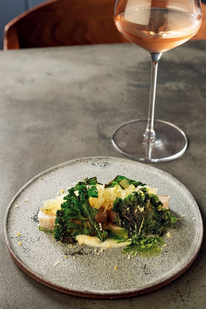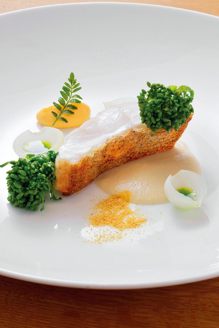 遼さんは旬の素材を多用して主役のおいしさを引き出す。鰆にはケールや文旦、ソースは根セロリ。 撮影=前川明範