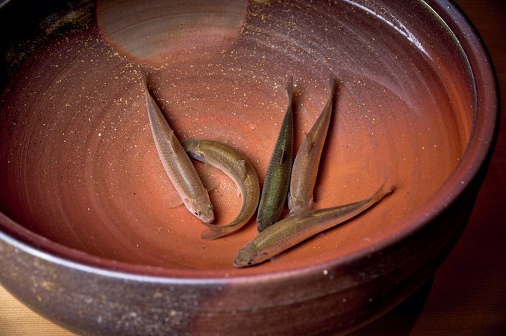 子持ちのもろこは澄んだ水で育った、岐阜・中津川産。多くの生産者との信頼関係により最高の食材が届く。 撮影=阿部 浩