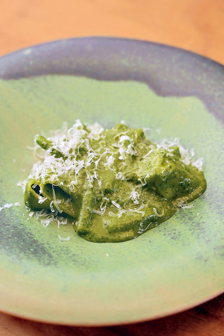ジェノバの滞在先で習った家庭の味のジェノベーゼ。イタリアのラザニアを使う。 撮影=安田慎一