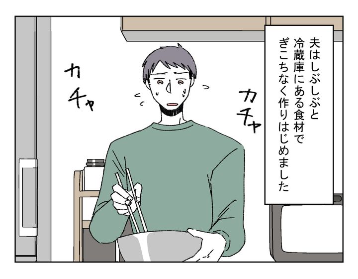 レナさんは30代の専業主婦。5歳と1歳の子育てに追われる毎日ですが、どんなに忙しくても食事作りは頑張ろうと思っているそう。しかしある日、夫のユウスケさんが、レナさんの作った食事を「バカでも作れそう」と全否定してきました。怒ったレナさん。翌日、生米を茶碗に入れて「バカだから作れません」と反撃。完璧な食事をユウスケさんに作ってもらうことになりました。