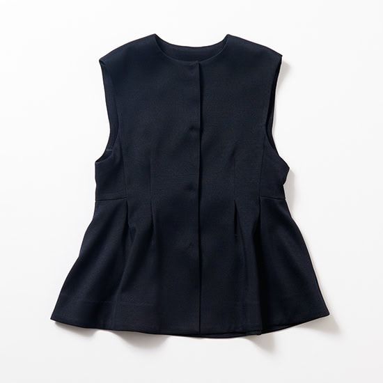 ➀手持ちパンツに合わせるだけで今っぽい!「王道ペプラムジレ」