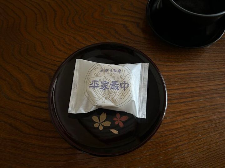 湯西川温泉は、壇ノ浦の戦いに敗れた平家の落人がこの地で温泉を見つけたことに由来すると伝えられています。そんな歴史にちなんだ名物が、平家の家紋をかたどった「平家最中」。薄皮の最中に、甘さ控えめのあんこが詰まったやさしい味わい。ラウンジで一杯楽しんだあと、ほろ酔いの身体にその甘さがすっと染みわたります。お土産に選びたくなるのも納得の一品。