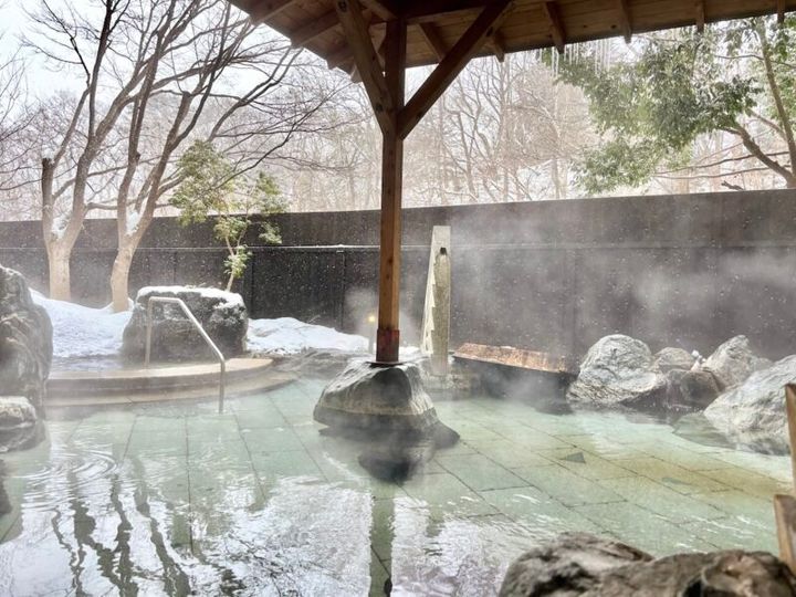 雪見の露天もサウナもそろう、美肌のお湯でリラックス