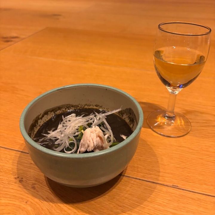 今回は黒の担々麺をいただきました。マイルドな辛さのスープは細麺によく絡み、夜遅くでも無理なく味わえるちょうどいいボリューム。本日三度目のお酒タイムとして、白ワインを軽く一杯添えれば、担々麺との相性もぴったり。