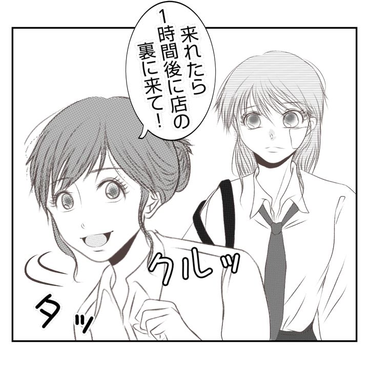 すると後からはるかが走って追いかけてきて、「1時間後に店の裏側に来てほしい」を声をかけられる。
