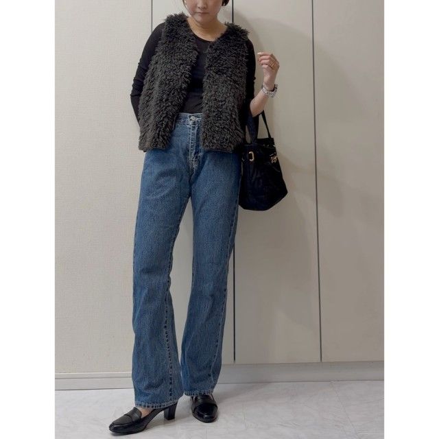 少し暖かい日には、ファーベスト×ボリュームスリーブブラウスの組み合わせもイチ押しです。ファーとブラウスの素材感の違いやシルエットで、おしゃれな奥行きを作ることができますよ。ボトムスはあえてカジュアルにまとめて、甘さとのバランスを取るとより着こなしやすくなります。