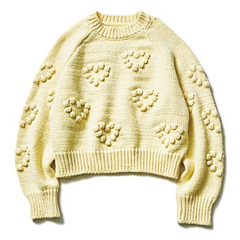 アイボリーハートニット/Ungrid カジュアル派も着やすい、立体的に編んで表現された同色のハート。すそが締まった長すぎない着丈で、厚手ながらすっきり着られる。