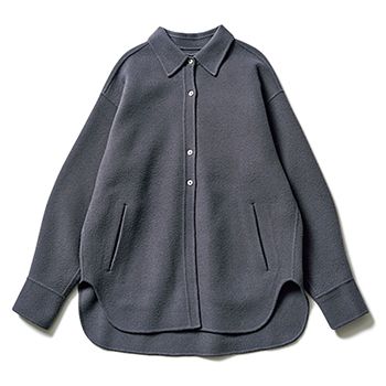 グレーメルトンシャツジャケット/TODAYFUL(Life’s 代官山店) シャツとして1枚でも、羽織りとしても重宝するちょうどいい厚み。特徴的な配置のボタンが遊びに。前後差のある丈感も抜けづくりにひと役。