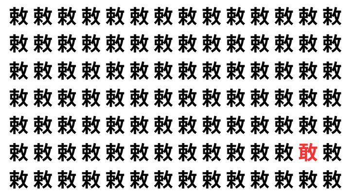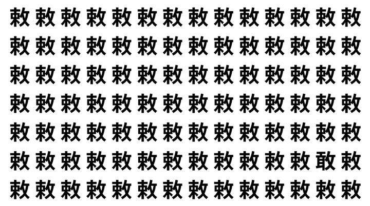 たくさんの「敕」の中に、よく似た別の漢字が1文字だけ隠れています。