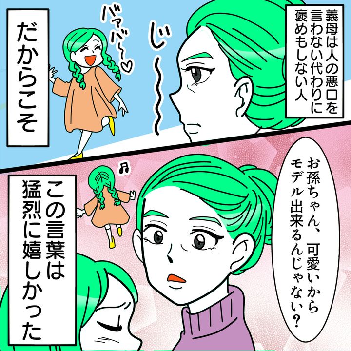 義母は人の悪口を言わない代わりに、褒めることもしない“クール”な人。それはわかっていたことだから、彼女の孫にあたるわが子や自分たちが褒められることなどないと、このママは思っていたようです。
