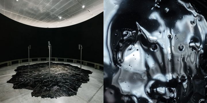石油由来で粘性が強い漆黒の物質であり、日常的な用途にも転用されている“瀝青(れきせい)”を制作に用いるアーティスト、アンドリウス・アルチュニアンさんにとって日本初開催となる個展「Obol」。“瀝青”をイメージの起点に、ギリシャ神話に登場する冥界の渡し守カロンや古代宗教から語り継がれる神格がオマージュされ、「冥界者のためのクラブ」として時間や未来、神話についての問いが投げかけられます。