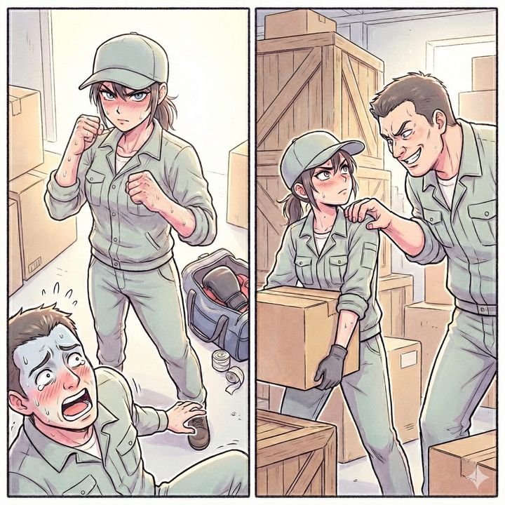 今日も私は静かに、重たい荷物を担いで汗を流しています。心地よい疲労感は、次の勝利への確かな糧。倉庫の片隅で、私は密かに次の試合への闘志を燃やすのでした。