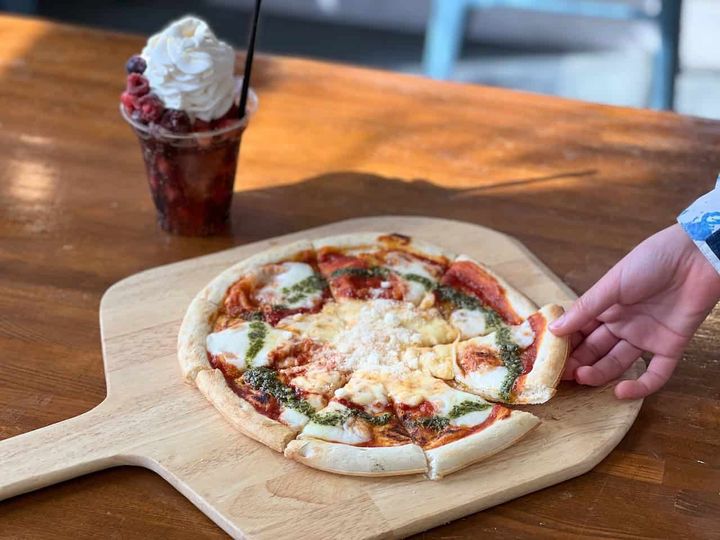 マルガリータピザとおしゃれなドリンクの「ベリーベリーアイス&コーク」。