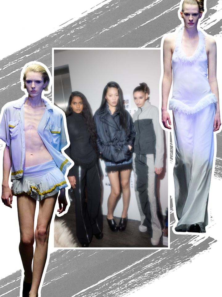 一見するとエッジィなアップサイクル・コレクションだが、雪をかぶったようなメイクを含め、そこに表現されたのは、母国で続く人道危機だ。モデルがランウェイを走る演出では、消費の速さ(ファストファッション)も風刺している。