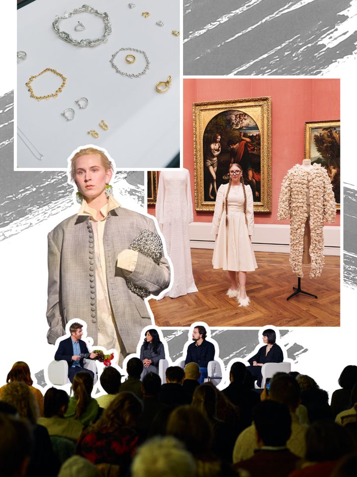 若手デザイナー5名による計24点の作品の素材には、企業の廃棄在庫が再活用。伝統的な職人技と現代の循環型経済を融合させる試みでもある。これらの作品は、世界的な名画を収蔵するゲメールデガレリーで展示中(Fashion x Craft: Echoes of Tomorrow“, Exhibition View, Gemäldegalerie 2025, Collection: V-Collective) Anasteisha Danger