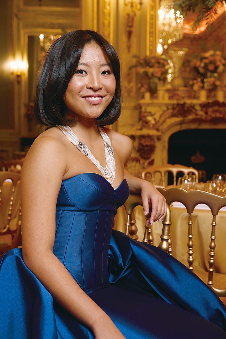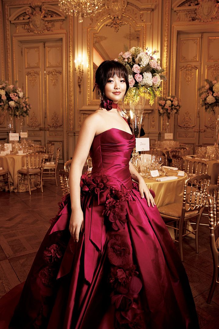 中国の世界的ハイテク企業、BYD創業者を父にもつアリス。現在は、コロンビア大学で心理学を学びながら、ダンスやドローイングなどの芸術活動にも意欲的に取り組み、感性を磨いています。バルへの参加も“オートクチュールをとおした自己表現のチャンス”と気合たっぷり。ヴェラ・ウォンの艶やかなドレスで新しい自分らしさの表現に挑戦しました。