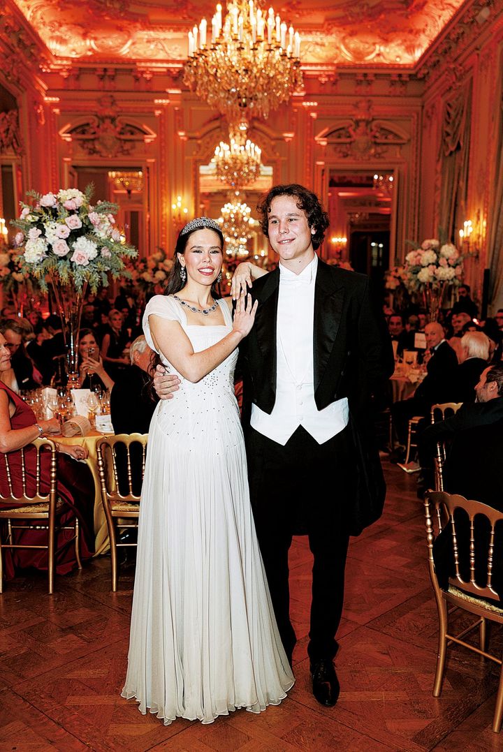 ヨーロッパ最古の王朝のひとつであるサヴォワ家の系譜で、母方の曽祖父はイタリア国王にあたるガブリエル。タイで生まれ、ジュネーブやマドリードなどヨーロッパ各地で暮らすなかで各国の多彩な文化や人々に出会い、人を結び付ける才能や明るく活発な性格を育みました。バルではイタリアのデザイナー、ルイザ・ベッカリアのドレスをまとい、兄のトマと共に登場。