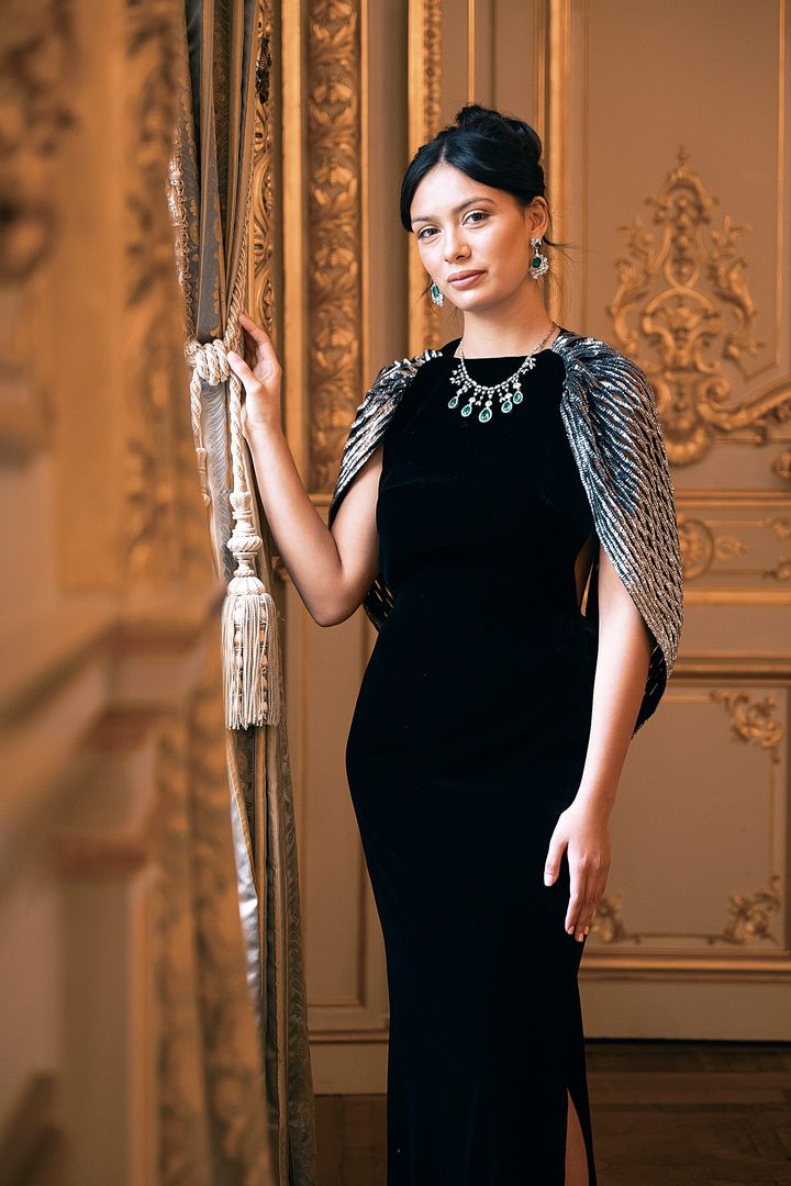 パキスタン建国の父を祖先にもち、インド屈指の名門ワディア家に生まれたエラ。祖父が率いる企業グループの系譜を継ぎながら、ファッション業界でのキャリアを切り開こうとしています。繊細な刺繍が美しいエリー・サーブのドレスも彼女ならでは。弁護士の父と仏大手企業で広報を率いる母のもと、知的好奇心あふれる家庭で姉妹とともに育った18歳。現在はマドリードのIE大学で、国際的な視野を磨いています。中国のオートクチュール界を代表するグオ・ペイの煌びやかなドレスをセレクト。