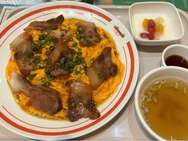 オムライスはえび、チャーシュー、ミックスの3種類があり、今回はチャーシューのオムライスをオーダーしました。