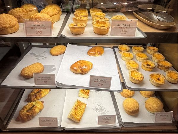 レジカウンターにはメロンパン、エッグタルトなどのスイーツが販売されていて、テイクアウトもできます。