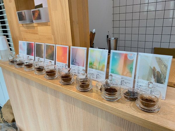 浅煎り、深煎りや産地などで自分の好みを選ぶことができます。 実際に豆の香りも嗅がせてもらえるのですが、豆によってこんなに香りが変わるのかと面白い発見がありました。