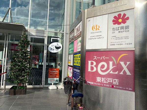 hano coffeeさんは東松戸駅の西口からすぐ!入り口はスーパーベルクス東松戸店の中です。