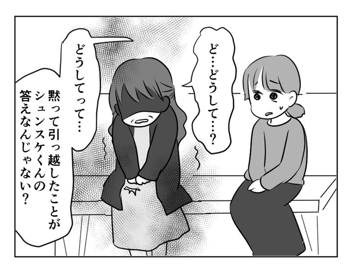 ササキさーーん! ありがとうございます! シュンスケさんが「黙って引っ越しをした」ということが、すべての結論だったのではないでしょうか。カツコさんはシュンスケさんにとって、引っ越し先を教えるに値しない人……だというメッセージが込められているのかもしれません。そこを無理矢理こじ開けても、もういいことはありませんよ?