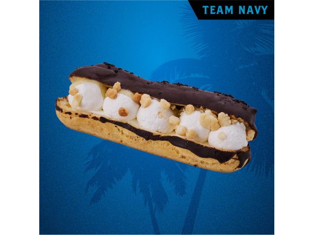 【琉球ゴールデンキングスコラボ企画】チョコカスタード、レアチーズクリーム、マスカルポーネホイップクリームを絞り仕上げたエクレアです。 沖縄で販売