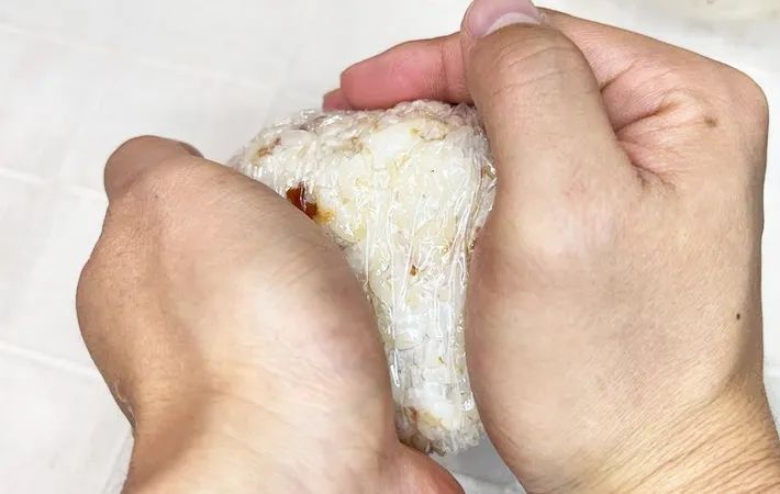 続いて、混ぜご飯を三角や丸など好みの形に握りましょう。