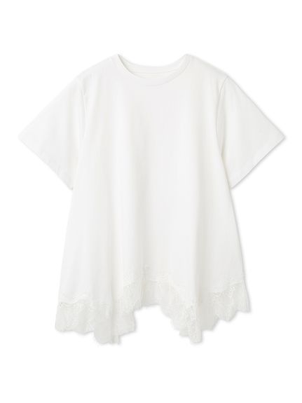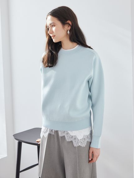 そのため、単品でも使い回しができる優れもの。ニットの丸襟部分からTシャツが計算されたバランスで覗くのも、さすが!な1枚。レースヘムレイヤードニット/Mila Owen
