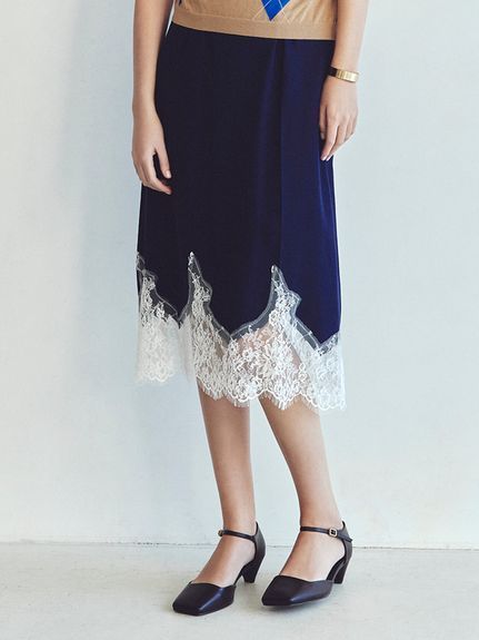 ミディ丈のスカートの裾部分がレースになったタイプも登場。仕事やオケージョンにもおすすめ。レースヘムスカート/Mila Owen