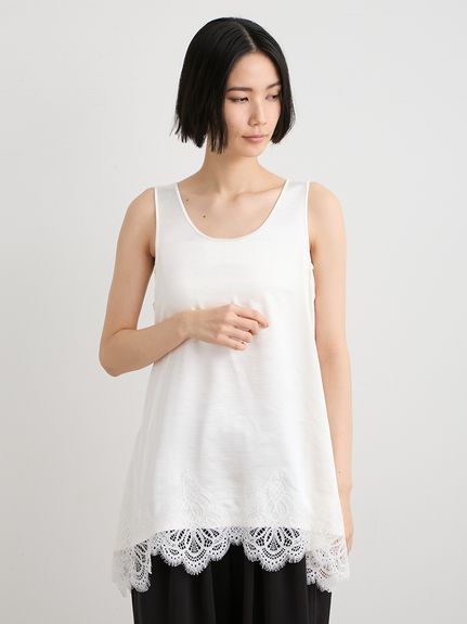 チュニックくらいの丈があるので、体型カバーにも最適。より女性らしい印象に着られます。綿カシミア×レースタンクSET /MIESROHE