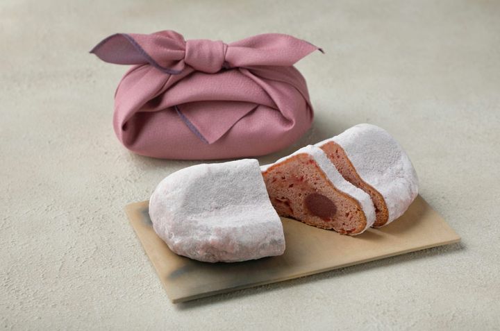 「アマン京都」でエグゼクティブペストリーシェフを務める松尾浩幸氏は、関西のラグジュアリーホテルで約40年にわたり培ってきた技術と感性を生かし、数々のスイーツを生み出してきた人物。デコレーションや細工菓子のコンテストでは、大阪府知事賞や最優秀賞などの受賞歴も誇る。そんなシェフが手がけたのが、春の気配を閉じ込めた「桜のシュトーレン」だ。桜風味のペーストと粉末状に砕いたアーモンドを練り合わせたマジパンを生地の中央に忍ばせ、キルシュとブランデーに漬け込んだチェリー、さらに桜ペーストを生地に練り込んで丁寧に焼き上げている。ひと口ごとにふわりと立ち上がる桜の香りと、チェリーの酸味が重なり、少しずつ味わう楽しみが広がる。ピンク色の風呂敷に包まれた佇まいも愛らしく、そのまま贈り物として渡せるのもうれしい。