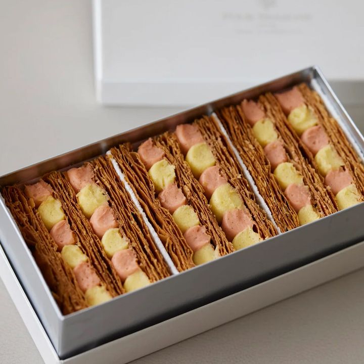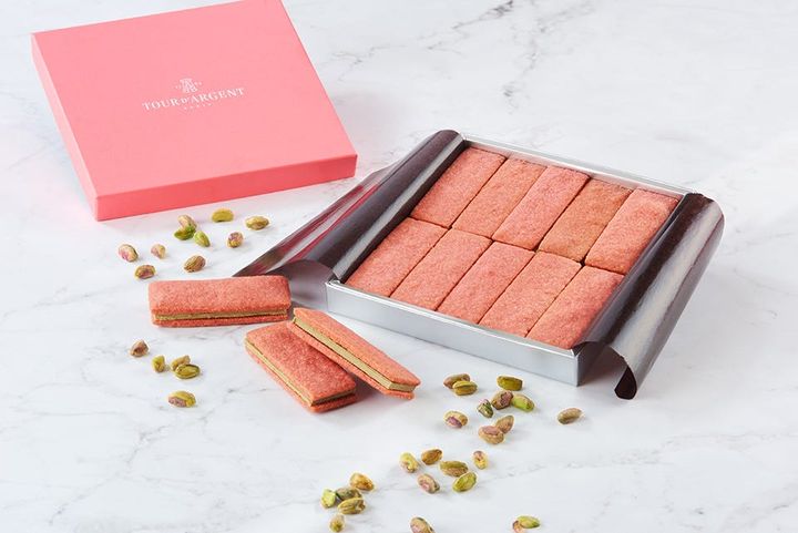 フレンチレストラン「トゥールダルジャン 東京」では、桜とピスタチオの華やかな組み合わせのビスキュイサンドが登場。ほんのり桜が香るビスキュイに、ピスタチオのチョコレートをサンドし、ひと口で春らしい香りと濃厚なコクのハーモニーが広がる。桜のやさしい風味に、ピスタチオのナッティで深みのある味わいが寄り添い、甘さの中に余韻が残るのも魅力。フランスの老舗グランメゾンの系譜を受け継ぐ同店らしく、味わいの組み立ては繊細で上品だ。ピンクとグリーンのカラーリングも春らしく、目にした瞬間から気分が高まる!