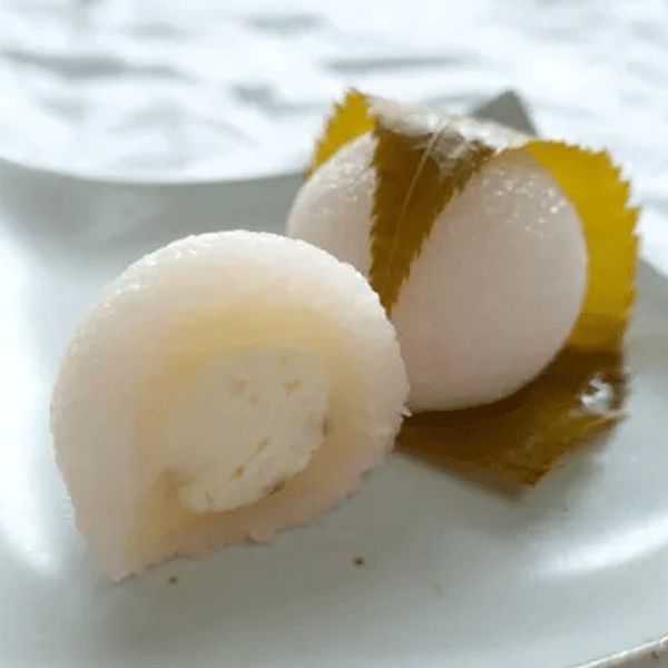 山形を代表する梅菓子「乃し梅」の元祖として知られる「乃し梅本舗 佐藤屋」。乃し梅とチョコレートを掛け合わせた「玉響」、ラム酒と黒糖の羊羹にレモンを効かせた「りぶれ」など、新感覚の和菓子を次々と生み出している。季節限定で登場するのは、桜餅の中に、クリームチーズを忍ばせ、さらに京都の発酵食品「大徳寺納豆」を刻んで加えた意欲作だ。クリームチーズのまろやかなコクに、大徳寺納豆の塩気とうま味が重なり、奥行きのある味わいに。そこへ桜の葉の塩漬けの香りと塩気が寄り添い、全体を引き締める。甘さ控えめで、お茶はもちろん、お酒にも合わせたくなる一品だ。