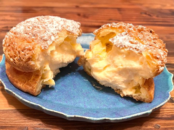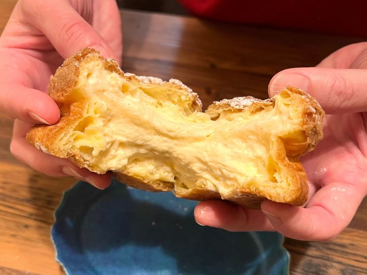 上にのったカリカリのクッキー生地と軽い食感のシューのバランスも絶妙で、これまたとりこに。こんなにたっぷり、ぎっしりとクリームが詰まっていますが、食べても食べてもくどくないのもすごい!