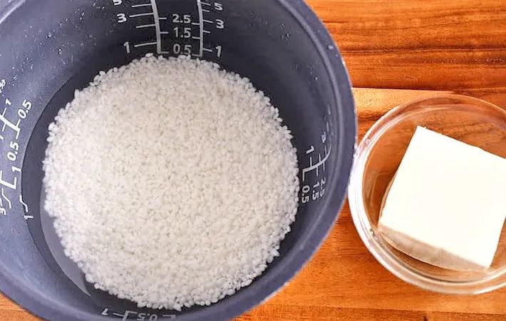 2.豆腐を入れて炊飯する