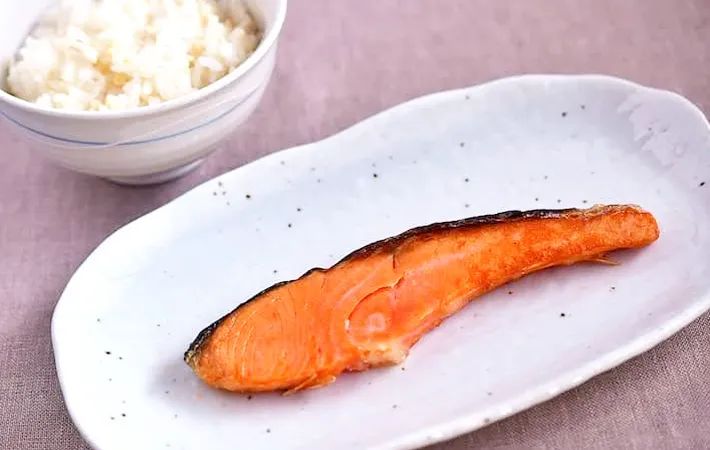 鮭はビタミンDが多く含まれる食品で、シンプルに焼いた鮭は『豆腐のかさましご飯』のおかずにもぴったり。ぜひ一緒に献立に並べてみてください。