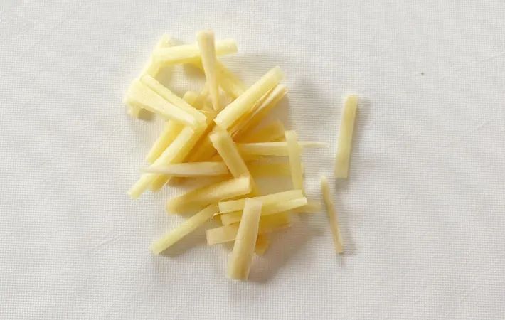 長ネギは斜め切りにして、ショウガは千切りにします。