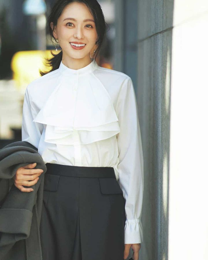 ①コンサバ派にはたまらないエレガントな「盛りブラウス」