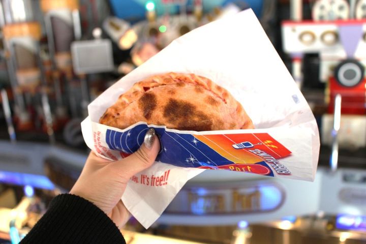「カルツォーネ」とは、ピザ生地で具材を包んで焼いたイタリア料理。一般的なピザよりもたっぷりの具材を楽しめます。濃厚なトマトソースに、やわらかくてジューシーなチキンがゴロゴロ入ってボリューム満点! もっちもちの生地もクセになります。ディズニー大好き編集部員の個人的激推しフードです!!