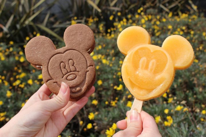 「ミッキー・クッキーサンドアイス」「ミッキーアイスバー(トロピカルフルーツ)」各400円