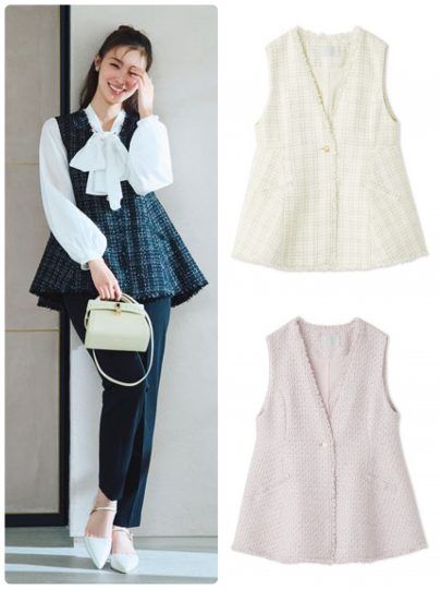 一枚重ねるだけで印象が変わる、万能ツイードジレ。