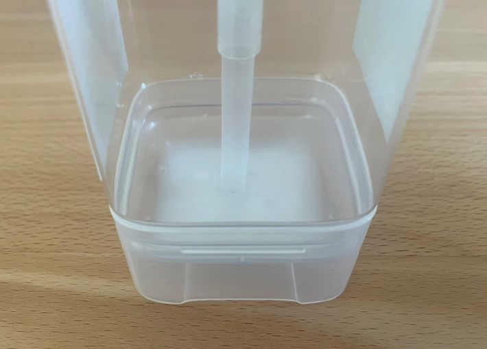 よく見てみると、傾斜によって、ソープがポンプ底の中心に集まっています。