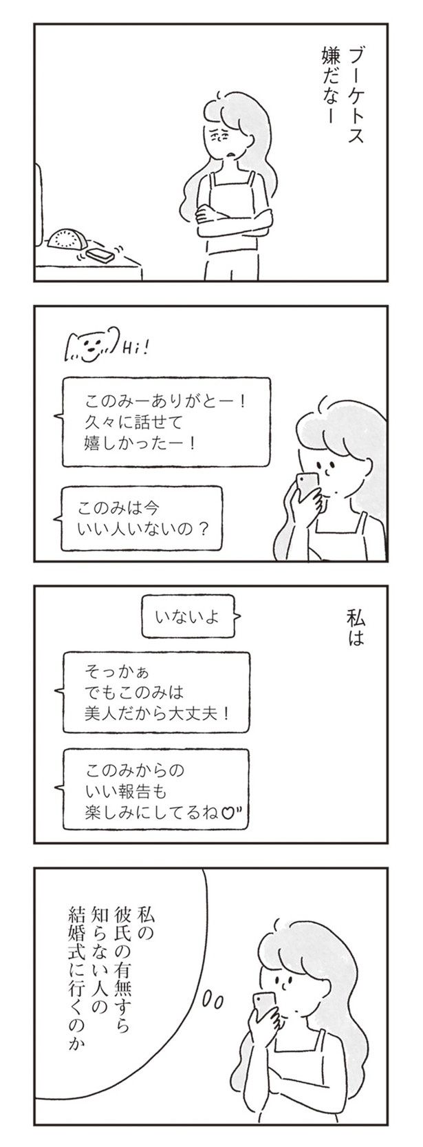 親しくない友人から結婚式の招待が。ひょっとして人数合わせ?/33歳という日々 独身彼なし、このみの場合②