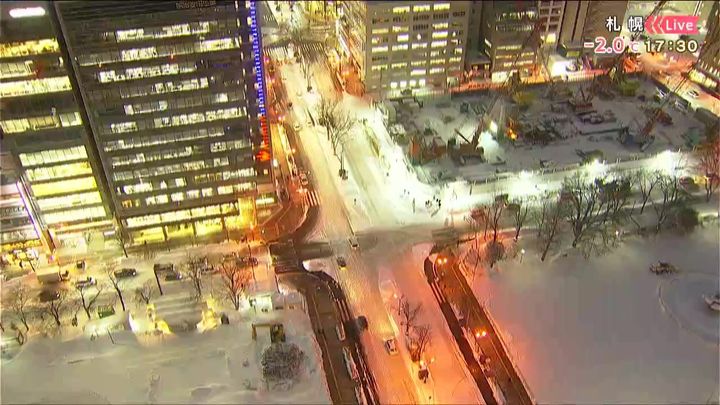 札幌は朝から暴風を伴って強い雪が降り、再び積雪が1メートルを超えました。移動には時間にゆとりをもつようにしてください。