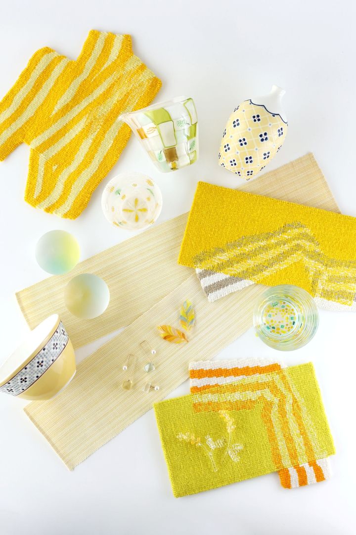 「3月8日は“国際女性デー”。女性に感謝や敬意の気持ちを込めてミモザを贈ることから、別名『mimosaの日』とも呼ばれています。本展では『mimosa・yellow』をドレスコードに、織り・ガラス・磁器の作家の皆さまに作品を制作いただきました。春を告げるミモザのように、やさしく明るい色彩と素材の豊かな表情が広がります。素材の個性が響き合う、明るい春のはじまりの展覧会を、ぜひお楽しみください」(Sophora 店主)