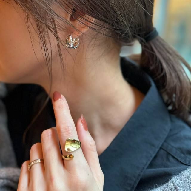 カチッとワンタッチで留まるフープピアスは、ストールやマスクなどを着けたときにも引っかかりにくいのが魅力。リング(指輪)とシルバーでカラーを揃えてもよしなら、あえてゴールドとミックスするのも素敵ですよ。
