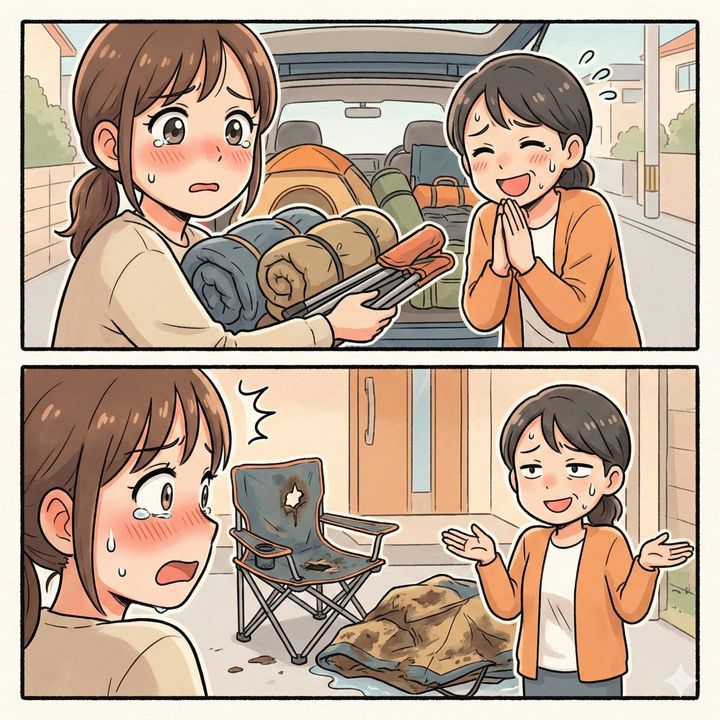 「キャンプ道具、全部貸して」と頼み込んできたママ友。だが、返ってきた道具を見て怒り心頭【短編小説】