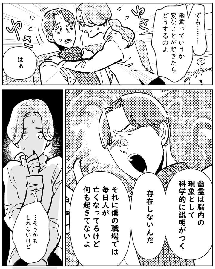 しかし喜んだのも束の間、そこは未解決事件の現場となった「事故物件」だと判明して…!?「幽霊なんて科学で説明できる」と夫は笑いますが、この部屋には明らかな異常が潜んでいます。